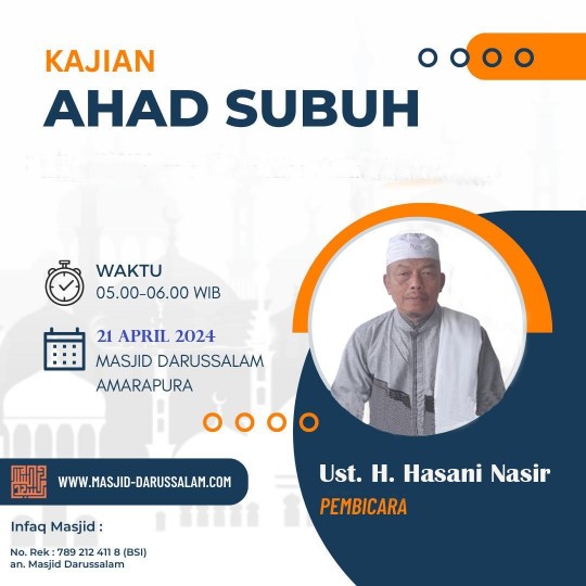 DKM Darussalam mengundang Bapak/Ibu Muslimin/at Jamaah Masjid Darussalam untuk hadir Sholat Subuh Berjamaah dan Kajian Ba’da Subuh