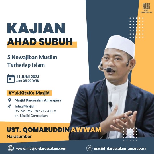DKM Darussalam mengundang Bapak/Ibu Muslimin/at Warga Amarapura untuk hadir Sholat Subuh Berjamaah dan Kajian Ba’da Subuh