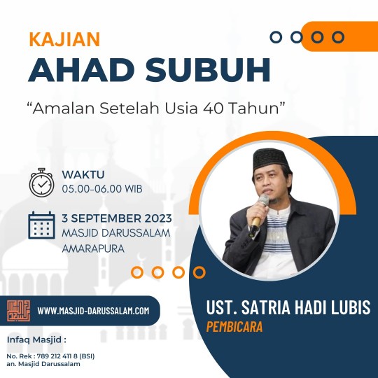 DKM Darussalam mengundang Bapak/Ibu Muslimin/at Warga Amarapura untuk hadir Sholat Subuh Berjamaah dan Kajian Ba’da Subuh