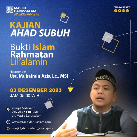 DKM Darussalam mengundang Bapak/Ibu Muslimin/at Jamaah Masjid Darussalam untuk hadir Sholat Subuh Berjamaah dan Kajian Ba’da Subuh