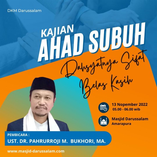 DKM Darussalam mengundang Bapak/Ibu Muslimin/at Warga Amarapura untuk hadir Sholat Subuh Berjamaah dan Kajian Ba’da Subuh