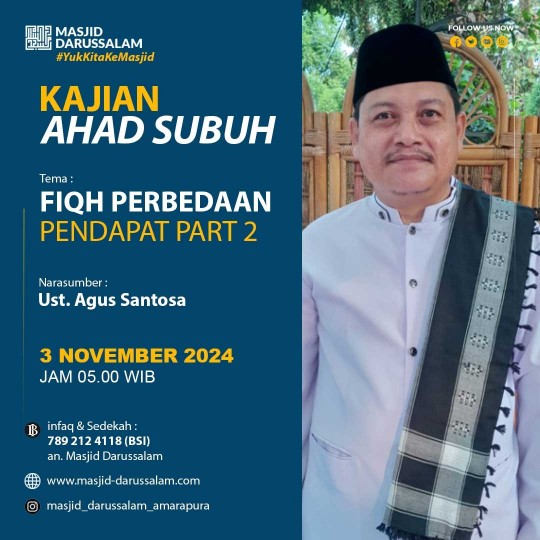 DKM Darussalam mengundang Bapak/Ibu Muslimin/at Jamaah Masjid Darussalam untuk hadir Sholat Subuh Berjamaah dan Kajian Ba’da Subuh