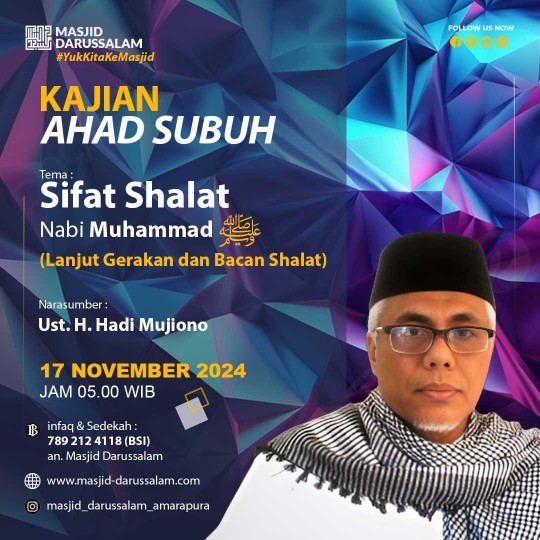 DKM Darussalam mengundang Bapak/Ibu Muslimin/at Jamaah Masjid Darussalam untuk hadir Sholat Subuh Berjamaah dan Kajian Ba’da Subuh