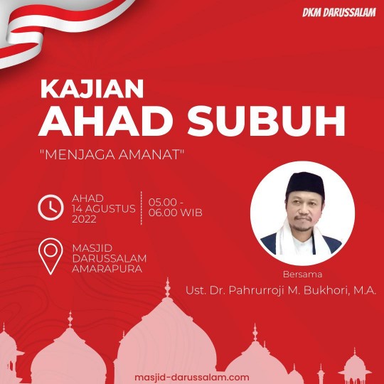 DKM Darussalam mengundang Bapak/Ibu Muslimin/at Warga Amarapura untuk hadir Sholat Subuh Berjamaah dan Kajian Ba’da Subuh