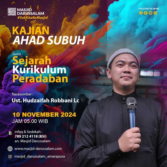 DKM Darussalam mengundang Bapak/Ibu Muslimin/at Jamaah Masjid Darussalam untuk hadir Sholat Subuh Berjamaah dan Kajian Ba’da Subuh