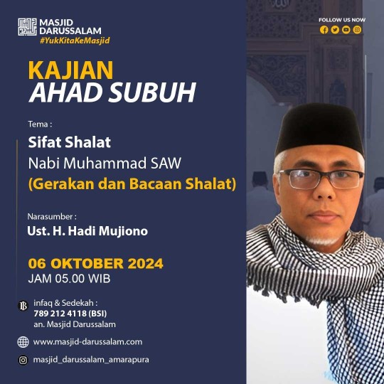 DKM Darussalam mengundang Bapak/Ibu Muslimin/at Jamaah Masjid Darussalam untuk hadir Sholat Subuh Berjamaah dan Kajian Ba’da Subuh
