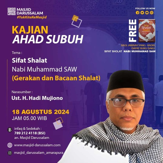 DKM Darussalam mengundang Bapak/Ibu Muslimin/at Jamaah Masjid Darussalam untuk hadir Sholat Subuh Berjamaah dan Kajian Ba’da Subuh