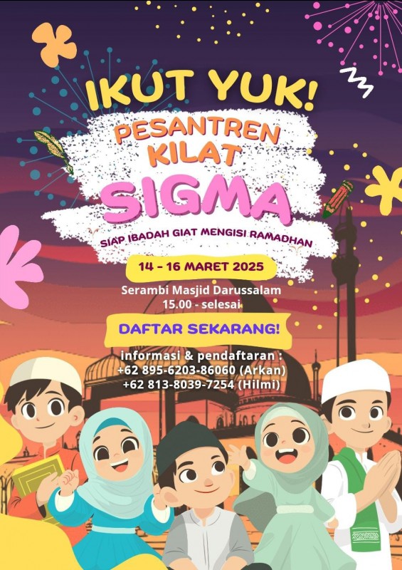 Dalam rangka menyambut, dan menghidupkan bulan Suci Ramadhan Tahun 1446 H, Kami Selaku Remaja Masjid Darussalam, DKM, Guru TPQ Masjid Darussalam Akan Mengadakan Pesantren Kilat,Yang Di Adakan Untuk Anak-anak Dari TK-SMP.