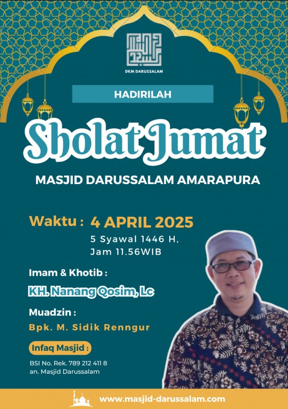 DKM Darussalam mengundang Jamaah Masjid Darussalam untuk menghadiri Sholat Jumat dengan :