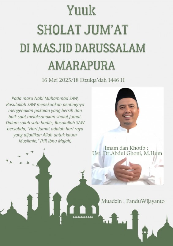 DKM Darussalam mengundang Jamaah Masjid Darussalam untuk menghadiri Sholat Jumat dengan :